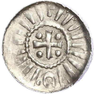| Beschreibung: | Magdeburg, Erzbistum, Erzbischof Adalbert +981 und König Heinrich I. 919-936 Randpfennig. 1,95 g. Trugschrift und Giebelkirche, darunter zaunartiges Gebilde / Kreuz mit Kugeln in Perlkreis, umgeben von Trugschrift gebildet aus Kreuz, Ringel mit Punkt und Strichen. Mehl 1, Dannenberg 1325 var., Gumowski 37/38 var. Sehr schön | |