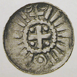 Beschreibung: | Randpfennig. 1,58 g. Kreuz mit Kugeln in Perlkreis, umgeben von Trugschrift gebildet aus Kreuz, Ringel und Strichen / Trugschrift, viersäulige Giebelkirche, darunter zaunartiges Gebilde. Dannenberg 1325 var., Dannenberg Bd. V S. 106, Gumowski 37 (Polnische bischöfl. Mzst.). Sehr schön | |