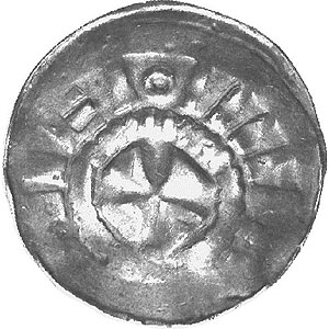 Beschreibung: | "Wendenpfennig" (10. Jh.) 1,40g. Kirchengebäude innen Kreuz aussen je Dreipunkt im Perlkreisd. Trugschrift / Trugschrift. Keilkreuz im Perlkreis. Kluge Typ 49, Gum. 41. gewellt, sonst ss | |