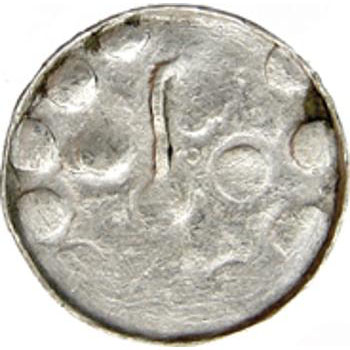 Beschreibung: | Denar, Av.: Krzyż kawalerski, Rv.: Pastorał między dwoma kropkami, wokół obwódka z dużych kropek, Dbg. -, CNP -, waga 0,549 g., obol ?, moneta małej średnicy i wagi, być może silnie zdewaluowany denar ? | |