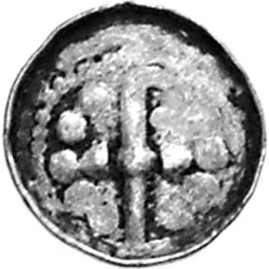 Beschreibung: | Randpfennig, bischöfliche Münzstätte. 0,87 g. Vier Keile ins Kreuz gestellt / Kreuz mit Krummstab und Kugeln. Dannenberg 1973, Gumowski 59. Sehr schön | |