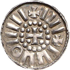 Beschreibung: | Zeit der Wenden um 1000. Randpfennig. 1,36 g. Kreuz mit Kugeln in Perlkreis, umgeben von Trugschrift gebildet aus zwei Kreuzen, Ringel und Strichen / Trugschrift und Giebelkirche, darunter zaunartiges Gebilde. Dannenberg 1325 var., Gumowski 37/38 var.. Prachtexemplar. Schöne Patina. Vorzüglich | |