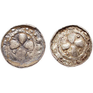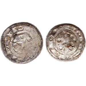 Beschreibung: | Hochrandpfennig, unbestimmte Münzstätte, möglicherweise Meißen. 1,06 und 0,92 g. Kugelstabkreuz, Trugschrift / Keilkreuz mit gepunkteten V-Haken und Punkte in den Winkeln, Trugschrift. Dannenberg 1339, Kilger MOL A 5:1/1. 2 Stück. Ein Stück leicht gewellt, sehr schön | |
