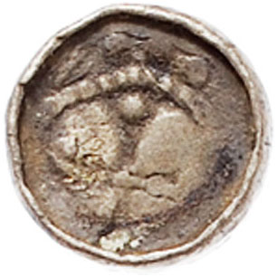 Beschreibung: | Obol, unbestimmte Münzstätte, möglicherweise Halle-Giebichenstein. 0,34 g. Hand mit Fahnenlanze / Keilkreuz mit kreuzendem Krummstab. Dannenberg 1356, Kilger Sal F 1o. Äußerst selten, fast sehr schön | |