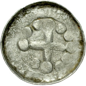 Beschreibung: | Denar, Av.: Krzyż kawalerski, centralnie kropka, między ramionami krzyżyki i kropki, Rv.: Krzyż prosty zakończony kropkami, między ramionami po dwie kropki, CNP 625, waga 0,909 g. | |